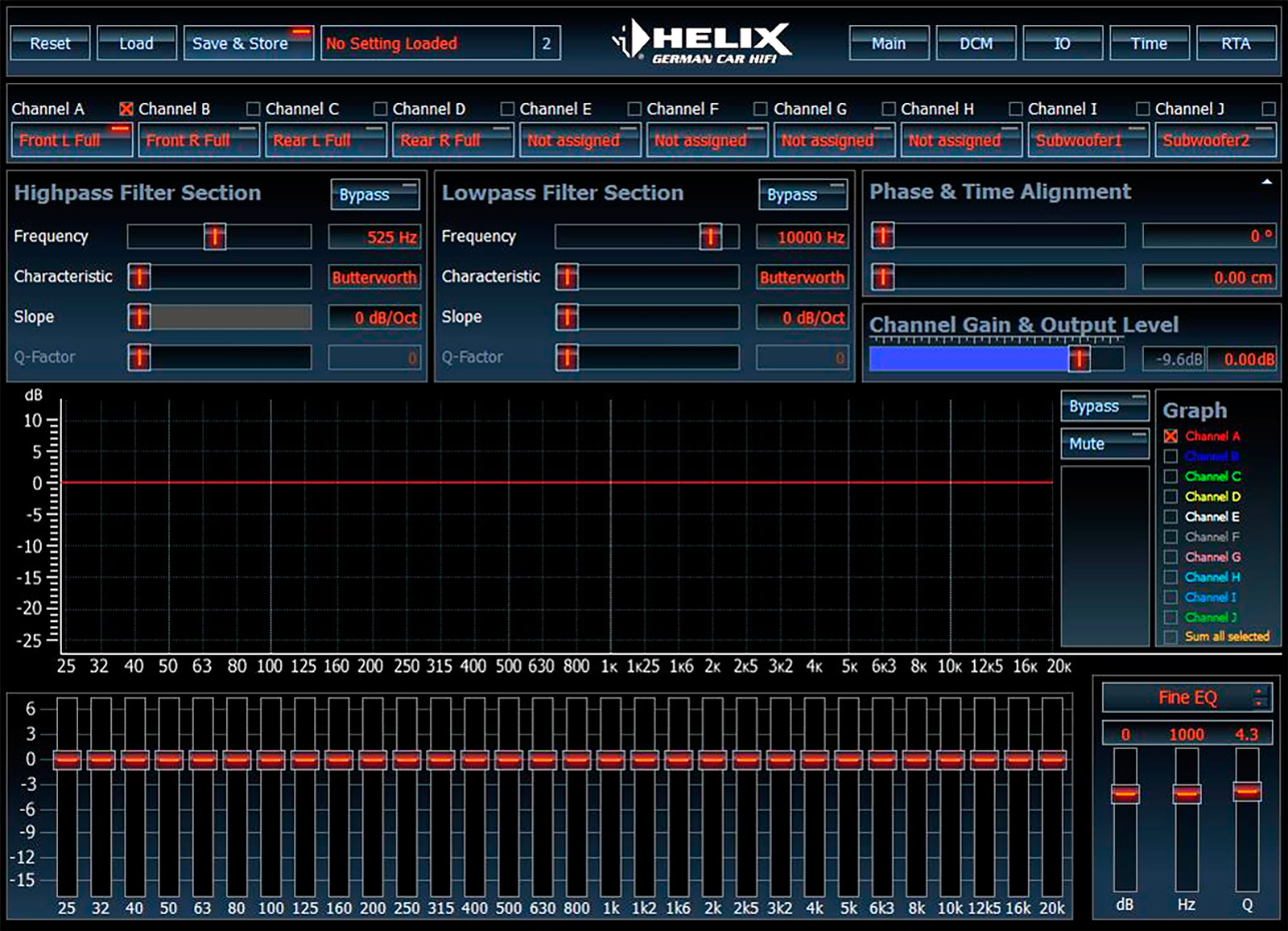 DSP PRO herhangi bir kanal için all-pass, high-pass veya low-pass seçme yeteneği sağlar ve ayrıca kendi özel bant geçiş geçişlerinizi oluşturmak için yüksek-geçiş ve düşük-geçişi birlikte seçebilirsiniz. Ve özel demek istiyorum. Çok küçük artışlarla (ayar aralığı 20 Hz ila 20 kHz’i kapsadığı için) neredeyse sonsuz sayıda frekans arasından seçim yapabilirsiniz.